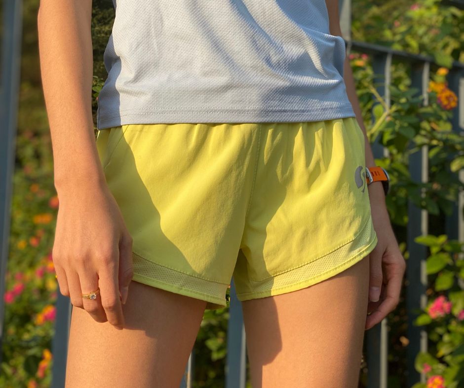 - Quần bao gồm 2 lớp, một lớp lót đùi bên trong.Có đặc tính khô nhanh, giữ cho da luôn khô thoáng